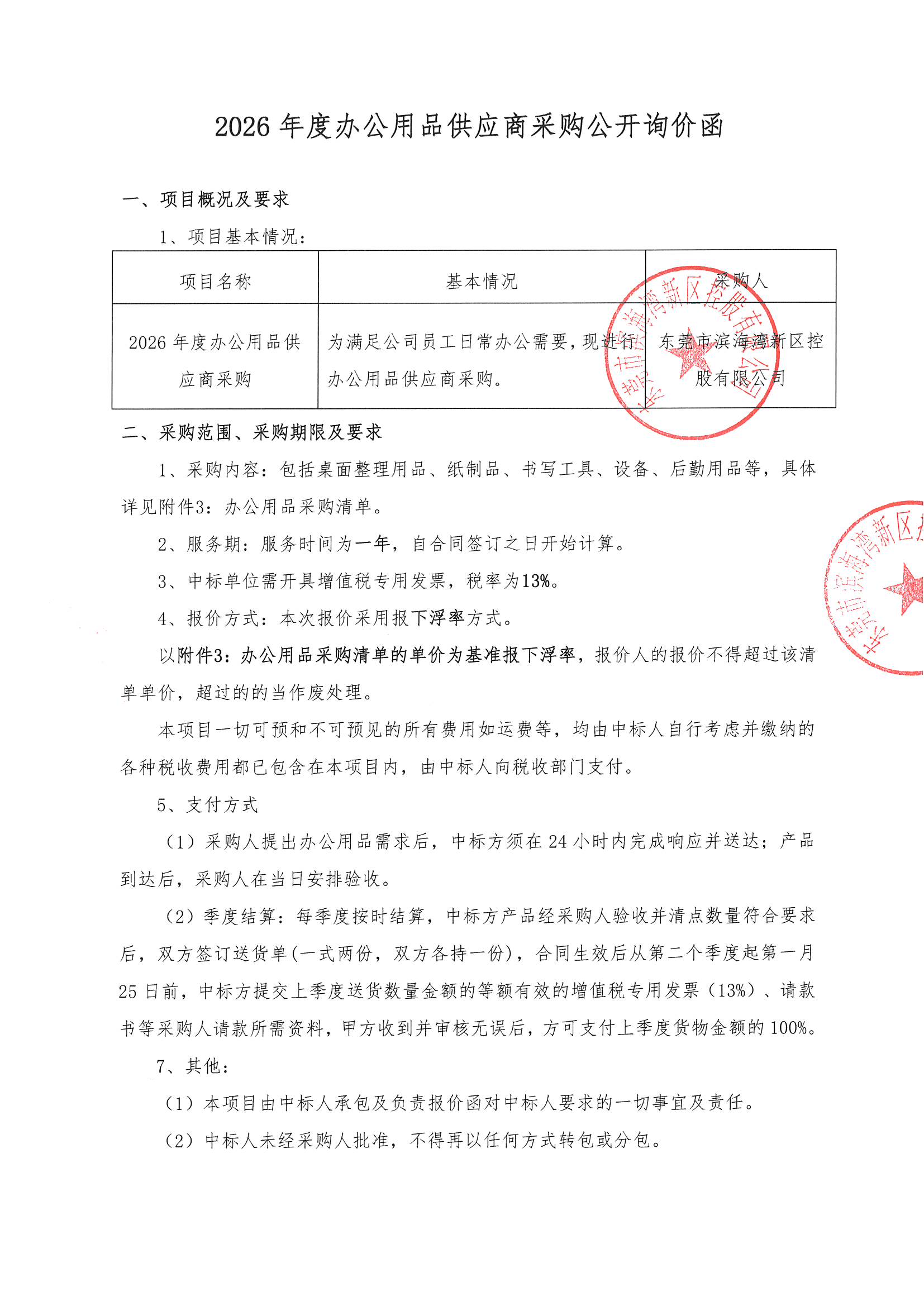 2026年度办公用品供应商采购公开询价函