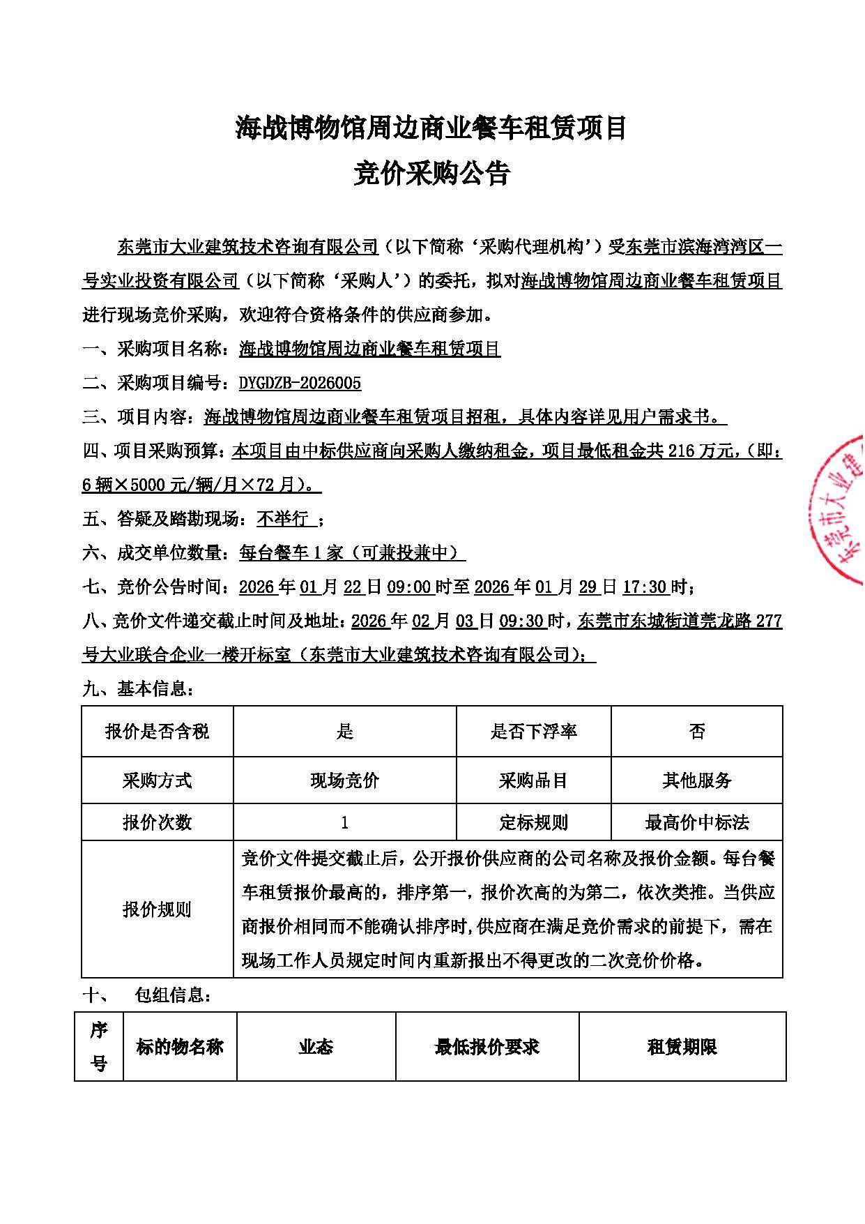 海战博物馆周边商业餐车租赁项目竞价采购公告