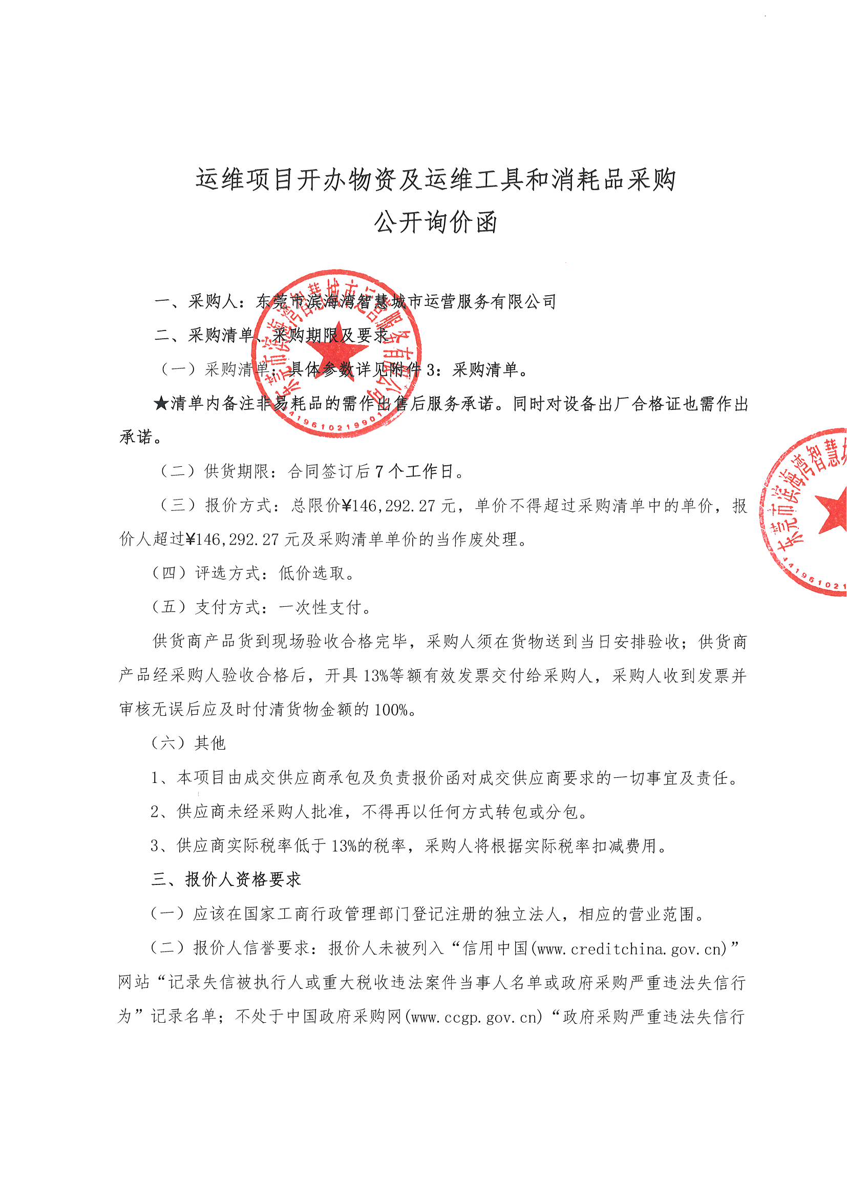 运维项目开办物资及运维工具和消耗品采购公开询价函