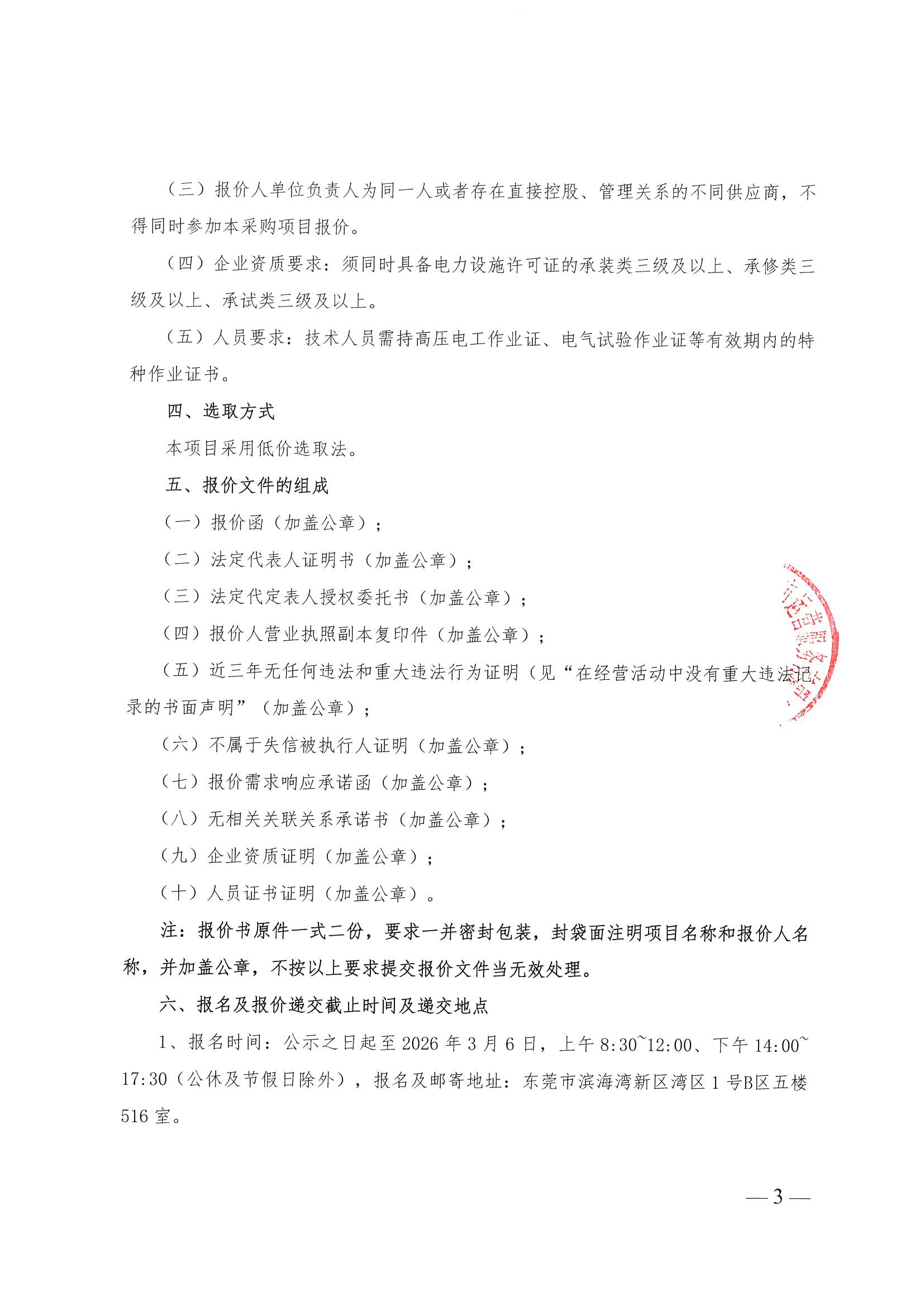 东莞滨海湾新区前端设备运维服务项目高低压配电设备维护服务项目公开询价函