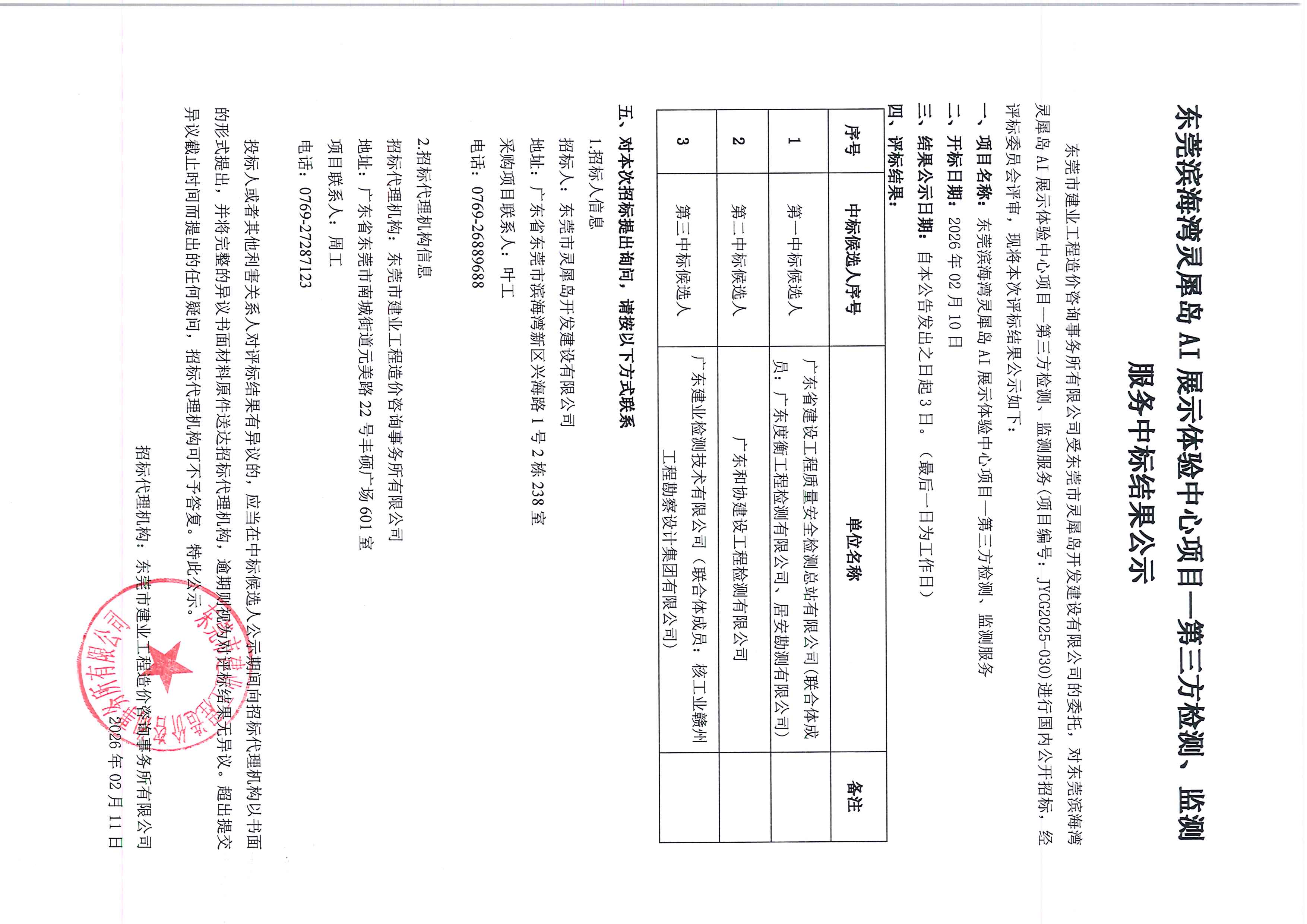 东莞滨海湾灵犀岛AI展示体验中心项目一第三方检测、监测服务中标结果公示