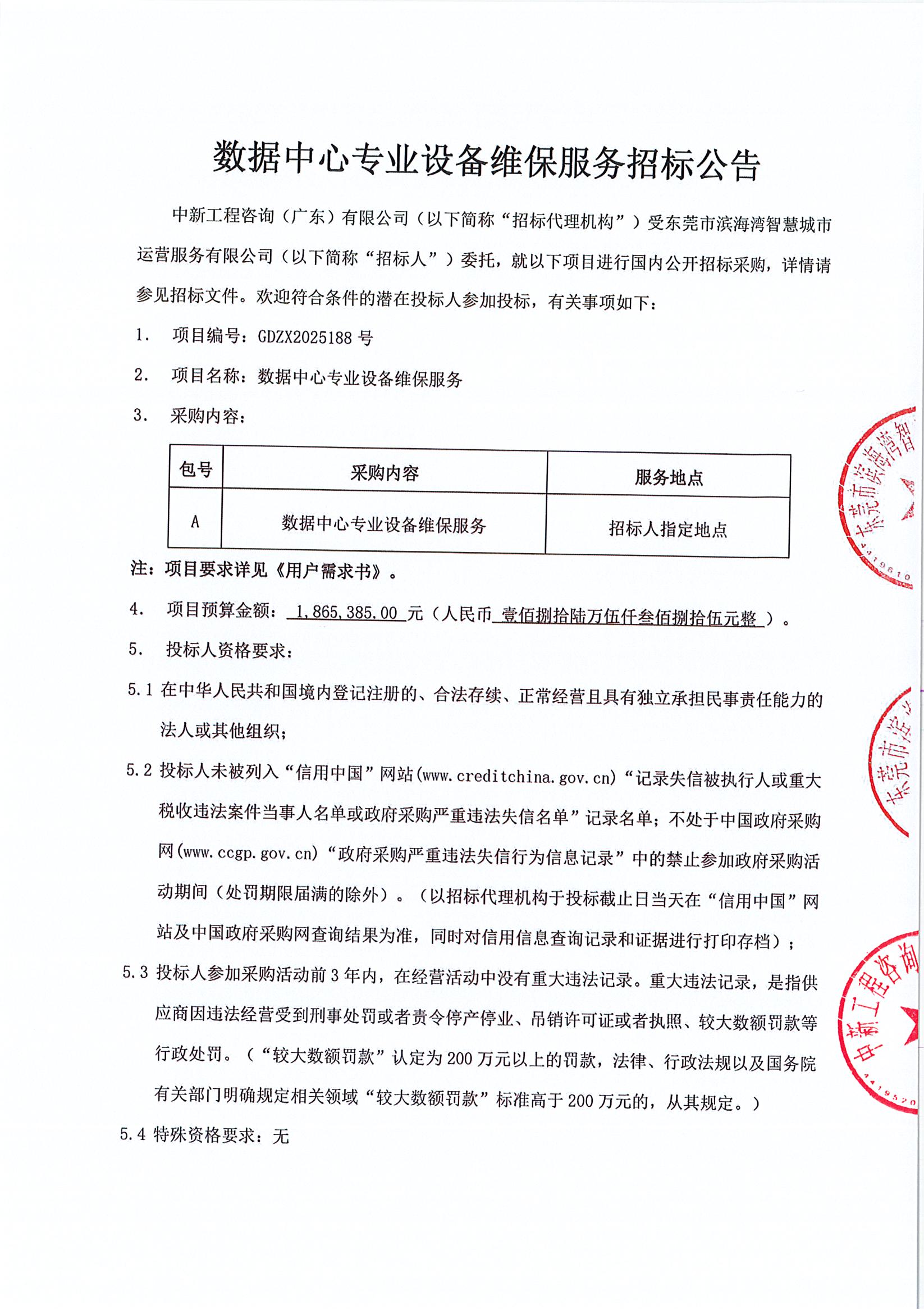 数据中心专业设备维保服务招标公告