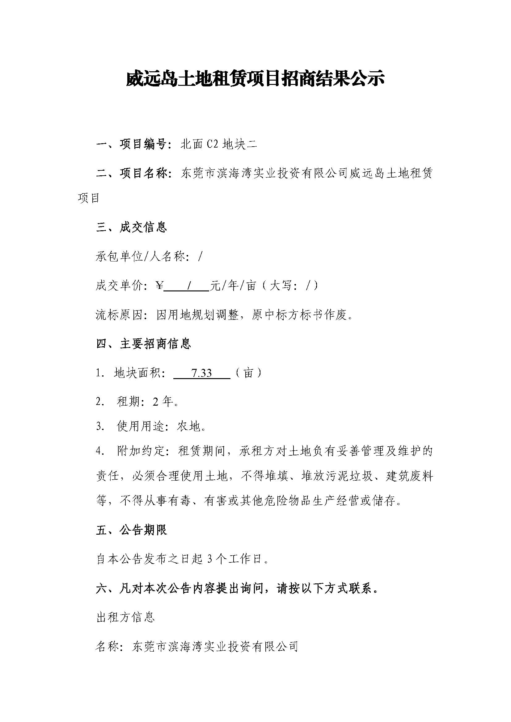 威远岛土地租赁项目招商结果公示(北面C2地块二)