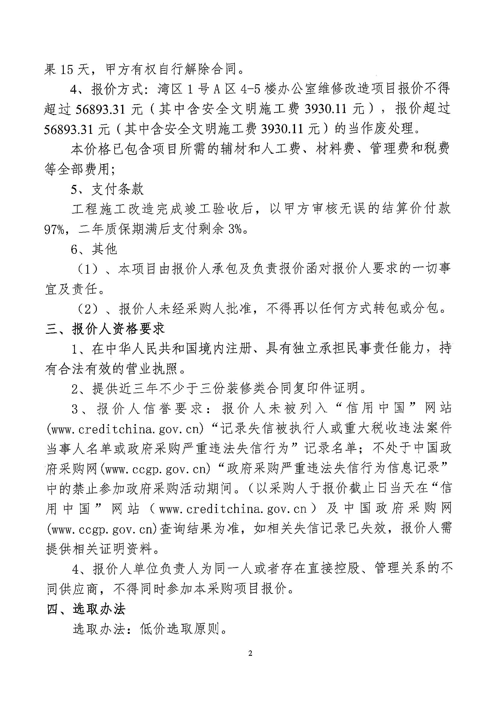 湾区1号A区4-5楼办公室维修改造项目公开询价函