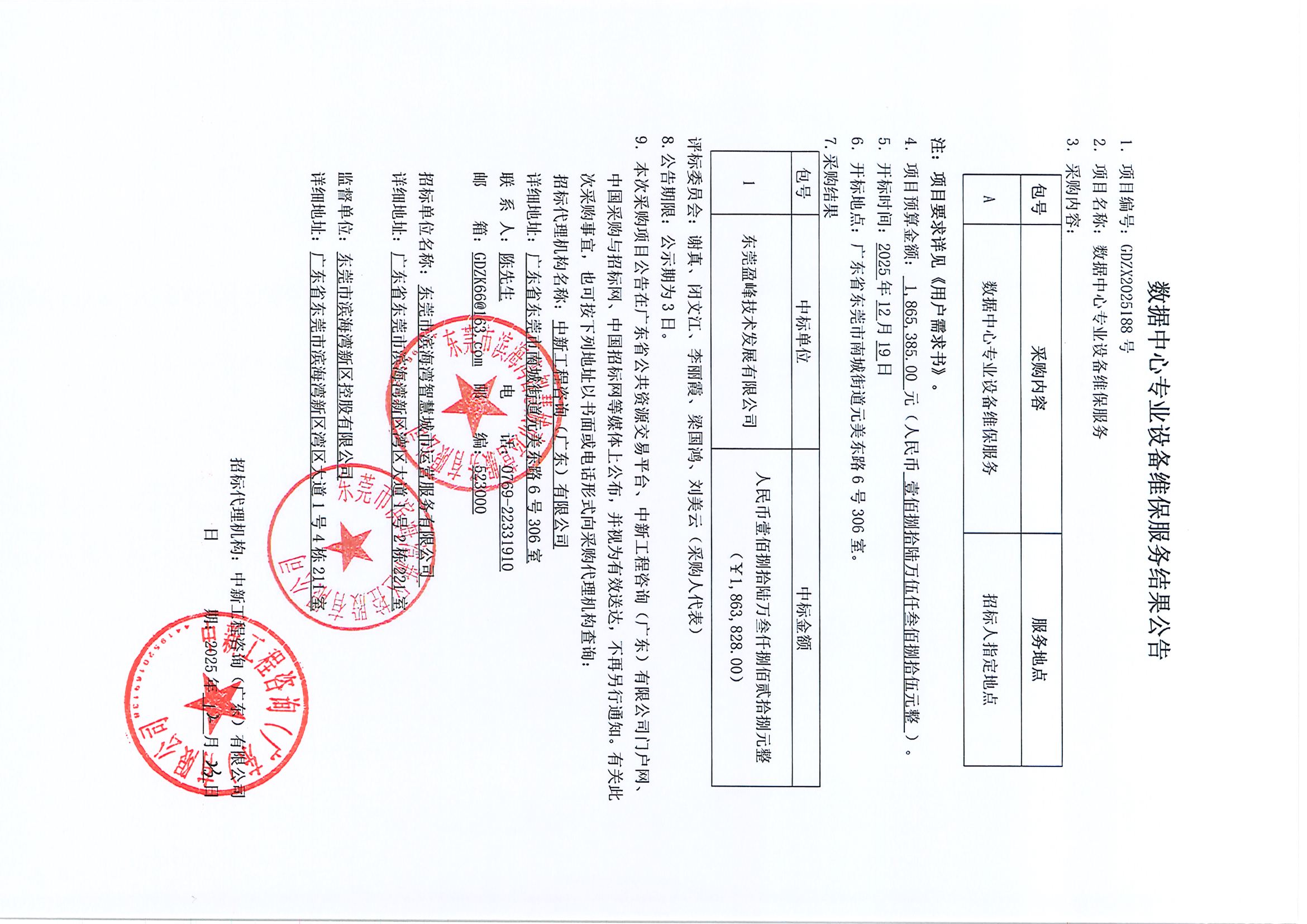 数据中心专业设备维保服务结果公告