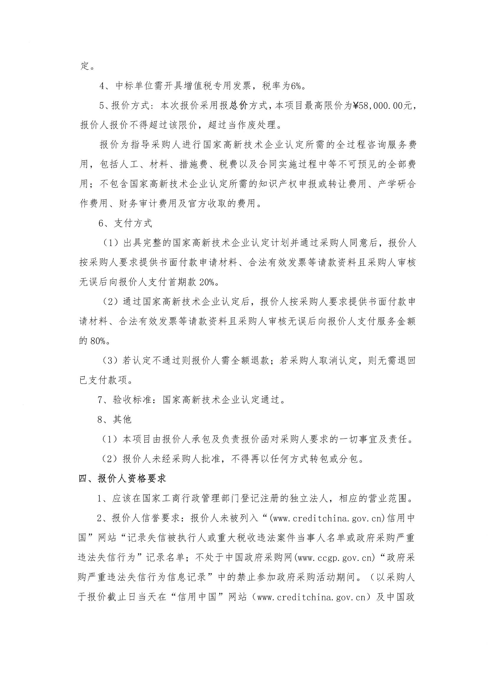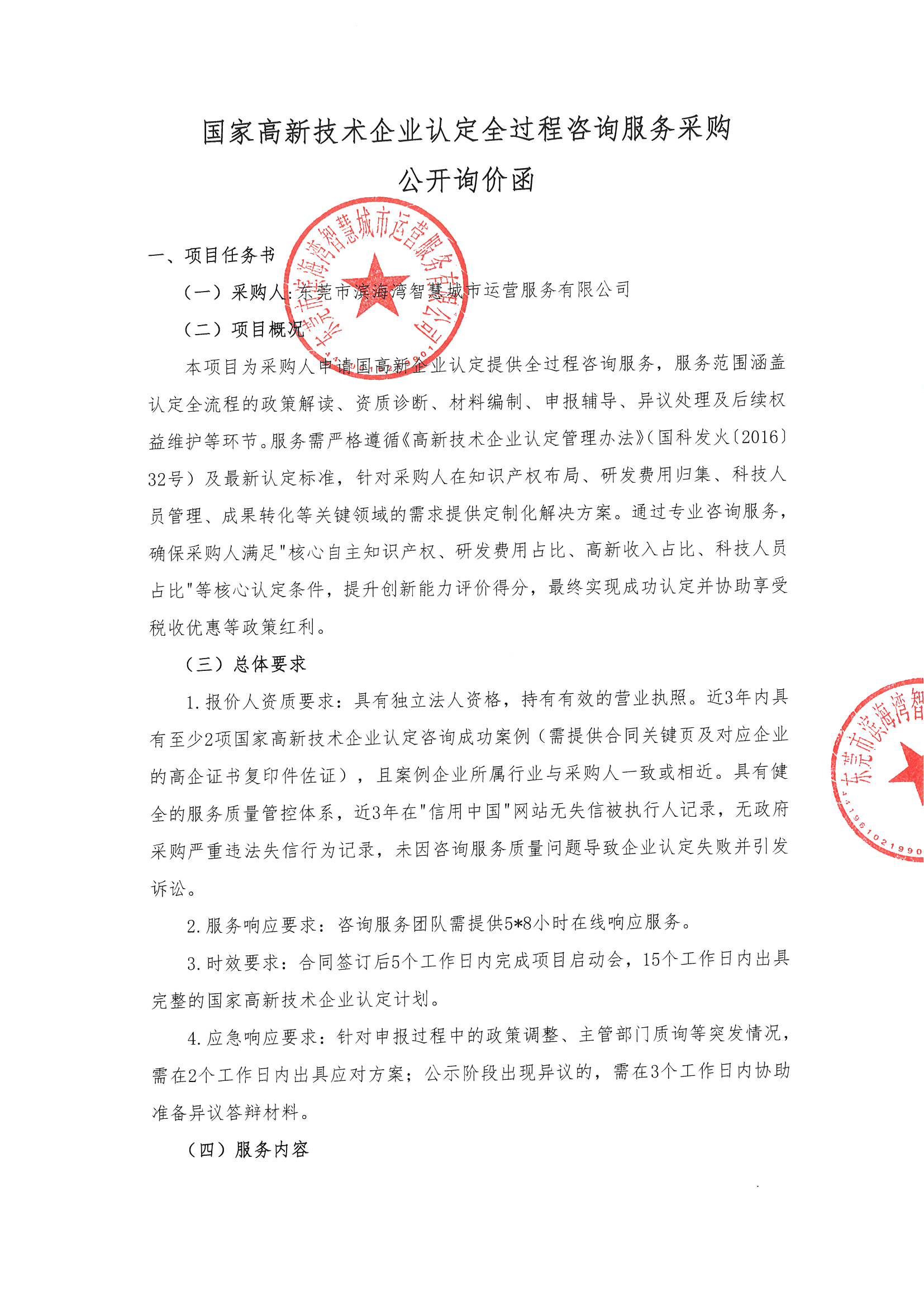 国家高新技术企业认定全过程咨询服务采购公开询价函