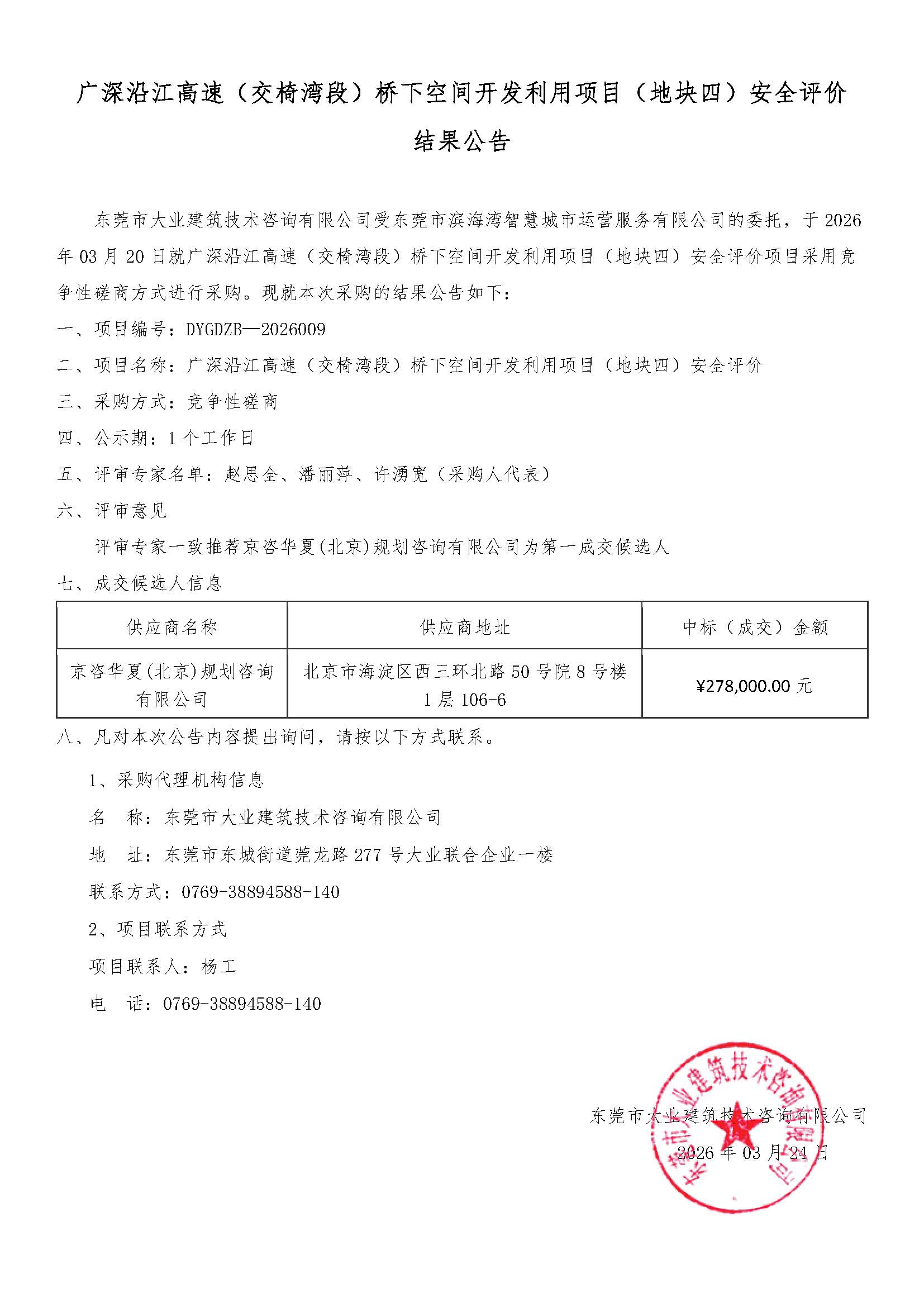 广深沿江高速(交椅湾段)桥下空间开发利用项目(地块四)安全评价结果公告