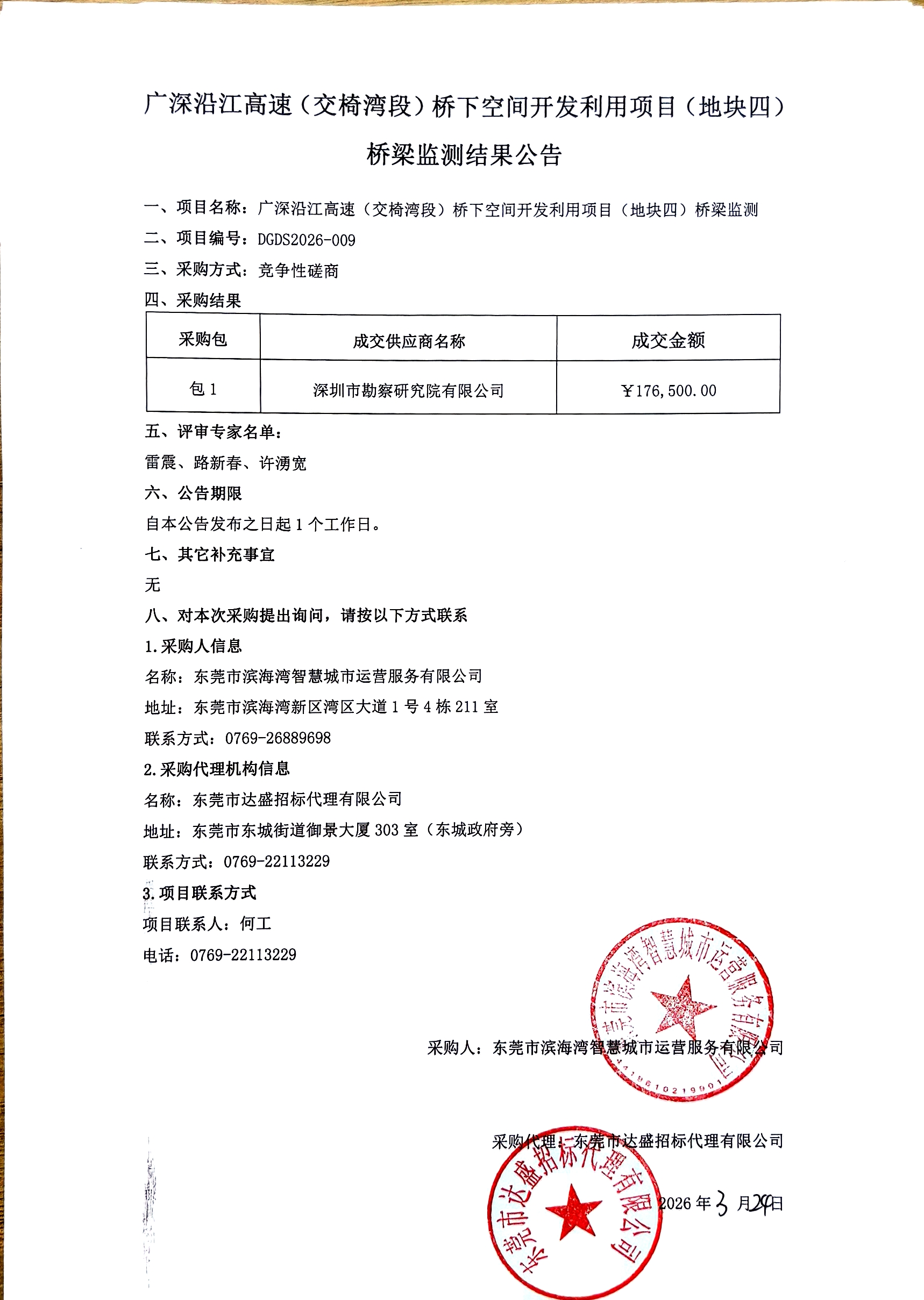 广深沿江高速(交椅湾段)桥下空间开发利用项目(地块四)桥梁监测结果公告